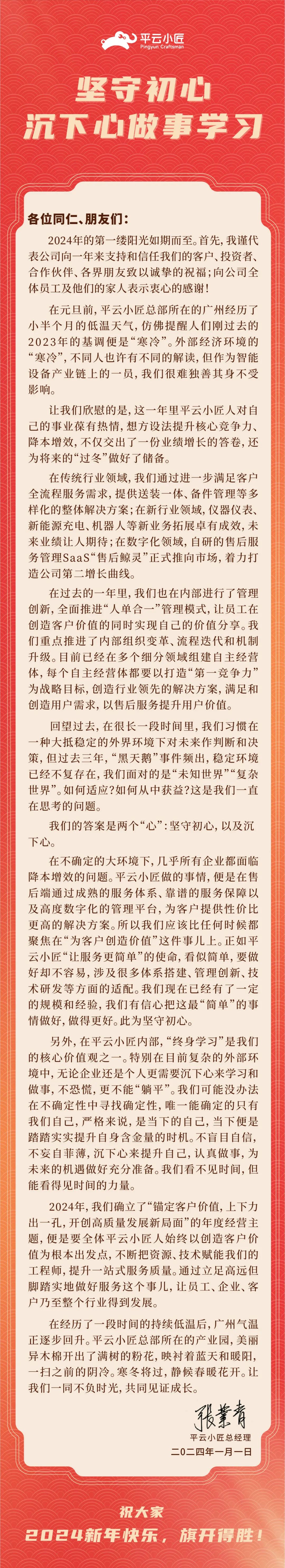 平云小匠新年寄语:坚守初心 沉下心做事学习