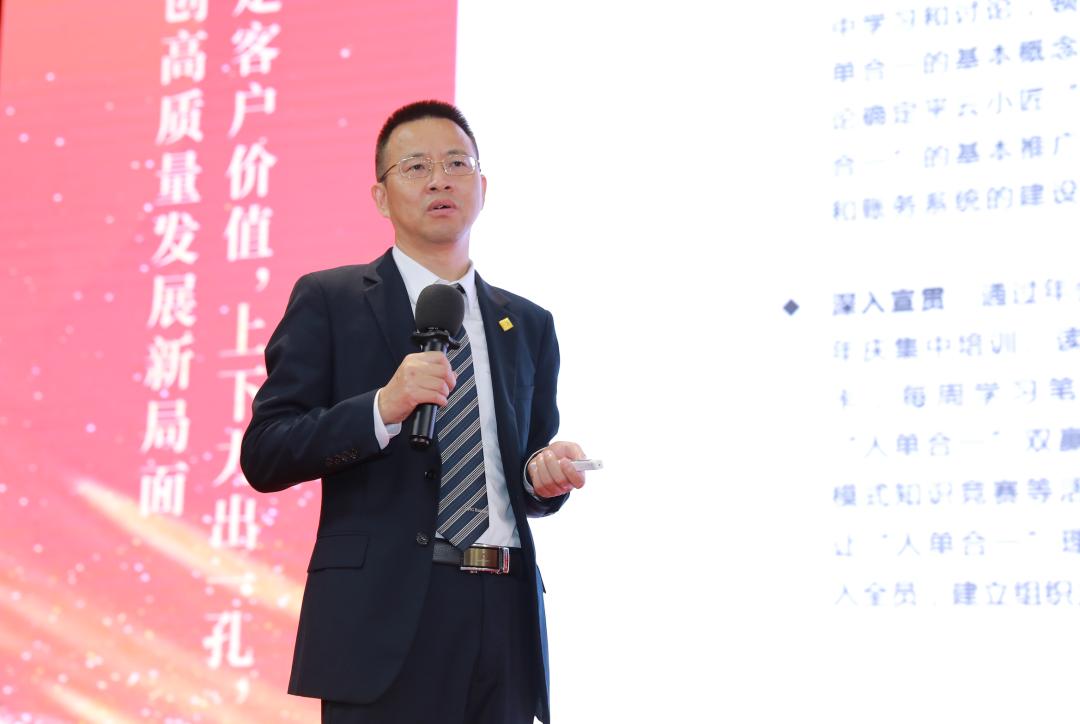 平云小匠总经理张业青在会上开展了《人单合一双赢共创管理模式》主题培训。2023年,平云小匠以“全力推进人单合一,为客户创造更大价值”为年度发展主题,在建立组织共识、构建业务框架、打造支撑机制、培养梯队人才等方面,推动“人单合一”落地并有效激发了内部的创新创业精神。张业青要求各自主经营体在2024年需进一步建立“第一竞争力”,并不断挑战自我、突破自我,在为用户创造价值的同时获得自身价值;全体员工面对市场机遇要有激情,更要保持清醒,牢记“锚定客户价值,上下力出一孔,开创高质量发展的新局面”年度发展主题,一同描绘公司未来。