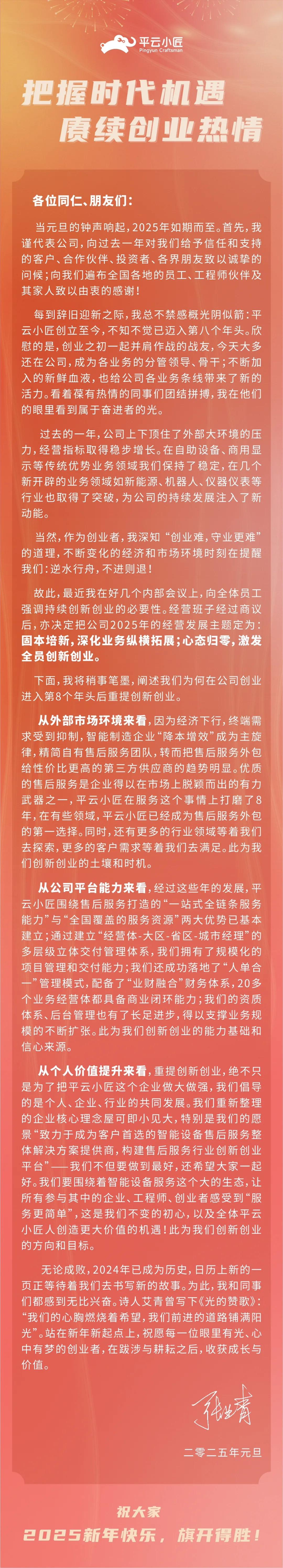 平云小匠新年寄语:把握时代机遇,赓续创业热情